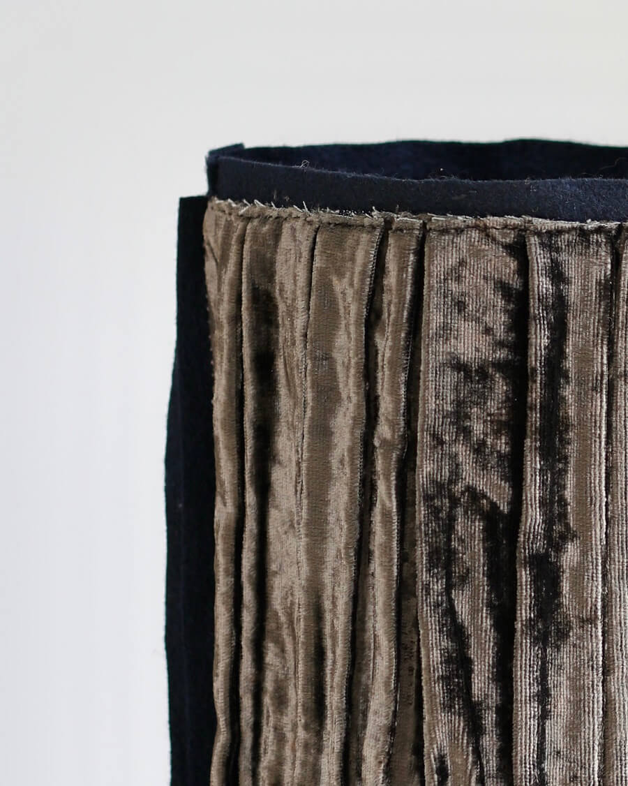 • Poterie textile "Longue" velours plissé chocolat Détail matière - crédit: © Odile Hiolin